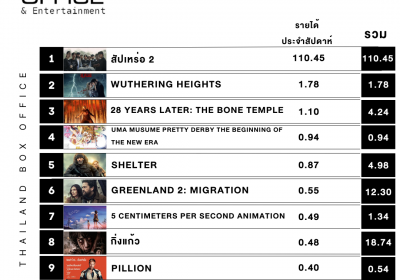 *ข้อมูลรายได้จากโรงภาพยนตร์เมเจอร์ซีนีเพล็กซ์ ทุกสาขาทั่วประเทศ และรายได้ประมาณการณ์จากโรงภาพยนตร์อื่นๆ ทุกจังหวัดทั่วประเทศ*