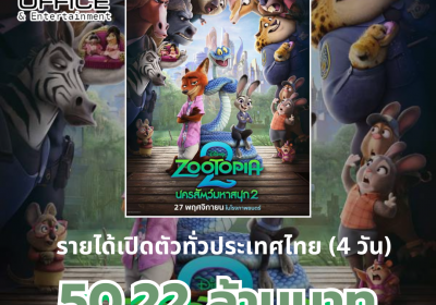 เหมือนว่าเราจะได้ชื่อของแอนิเมชั่นที่ประสบความสำเร็จเรื่องรายได้ที่สุดของปีนี้แล้ว หลังจากที่ Zootopia 2 (2025) หรือ นครสัตว์มหาสนุก 2 ได้เข้าฉายในโรงภาพยนตร์ทั่วโลก และกวาดรายได้ไปได้มากกว่า $556 ล้านเหรียญ โดยตัวเลขรายได้ดังกล่าว แบ่งออกเป็นรายได้จากการเข้าฉายในทวีปอเมริกาเหนือ $156 ล้านเหรียญ และจากการเข้าฉายในภูมิภาคอื่น ๆ อีก $400…
