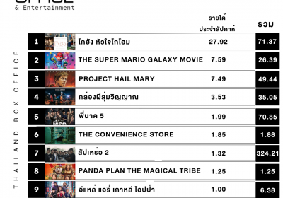 *ข้อมูลรายได้จากโรงภาพยนตร์เมเจอร์ซีนีเพล็กซ์ ทุกสาขาทั่วประเทศ